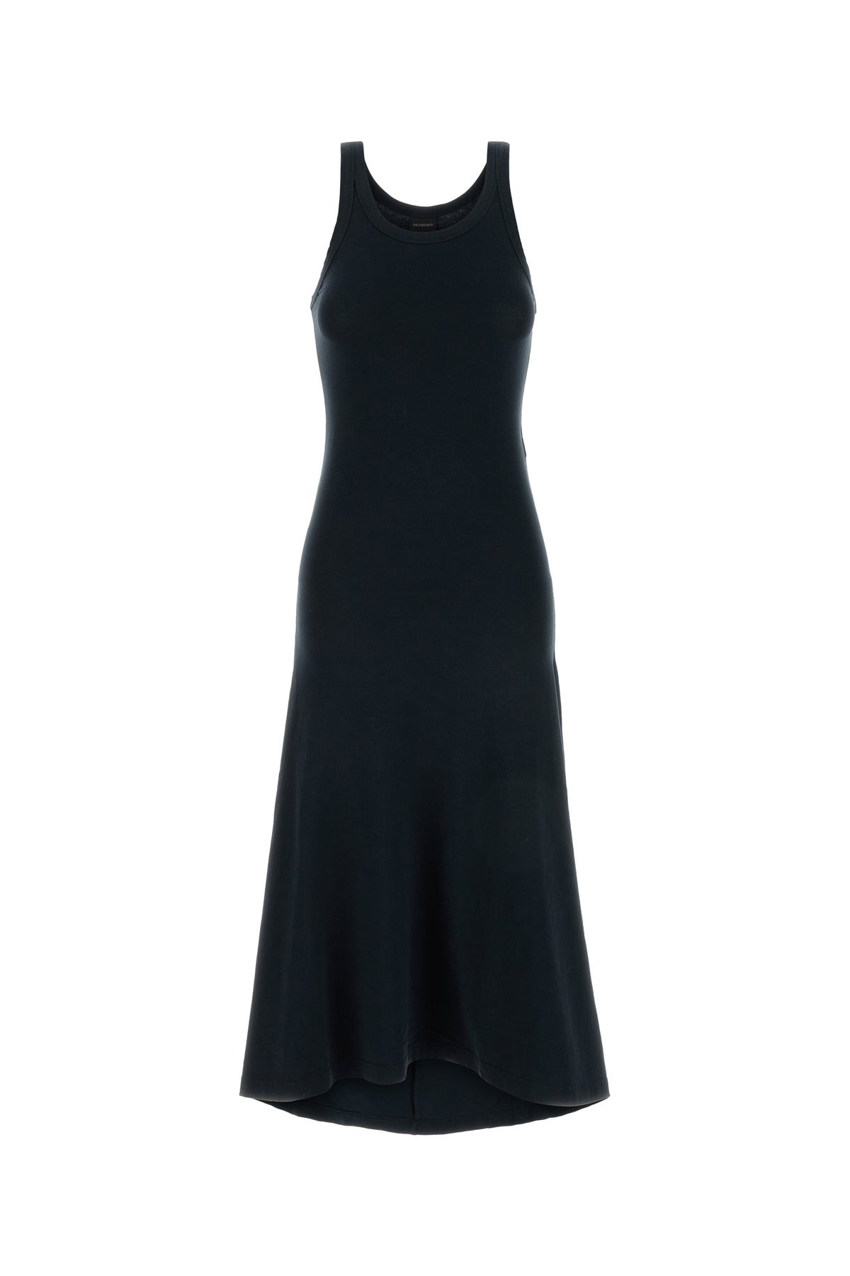 Dress realized in stretch cotton enriched by tonal logoed label at the back. - Round neckline - Flared hemline - Unlined DETAILS Slate stretch cotton dress Exterior: 94% Cotton 6% Elastane Made in portugal Sample size: XS