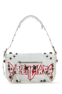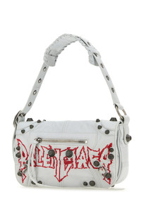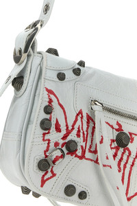 Shoulder bag realized in Arena lamb nappa leather characterized by contrasting peculiar logoed print at the front enriched by metal studs at the front and at the back. - Adjustable tonal leather shoulder strap with metal studs - Magnetic buttons closure under the flap - A zip pocket at the front and a zip pocket at the back - Lined interior with a zip pocket - Protective metal feet at the base DETAILS Exterior: 100% Lamb Lining: 100% Lamb Finishing: Antiqued silver metal Made In Italy Width: 24 cm Height: 15 cm Depth: 5 cm Min shoulder strap length: 10 cm Max shoulder strap length: 58 cm