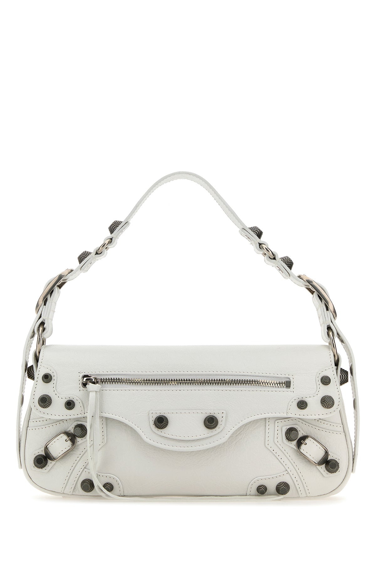 Shoulder bag realized in Arena lamb nappa leather enriched by metal studs at the front. - Adjustable tonal leather handle with metal studs - Magnetic button closure under the flap closure - A zip pocket at the front and a zip pocket at the back - Lined interior with a patch pocket DETAILS Exterior: 100% Lamb Lining: 100% Fabric Finishing: Antiqued silver metal Made In Italy Width: 30 cm Height: 14 cm Depth: 4,5 cm Min handle height: 16 cm Max handle height: 30 cm