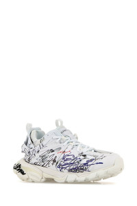Sneakers realized in mesh and rubber characterized by contrasting peculiar prints on the entire surface, printed logo on the side and embroidered number on the toe enriched by peculiar patch at the back. - Lace-up closure - Printed logo on the padded tongue - Padded ankle - Fabric pull-tab at the front and at the back - Printed logo on the inside DETAILS White mesh and rubber Track sneakers Exterior: 100% Fabric 100% Rubber Interior: 100% Fabric Sole: Rubber Made in china