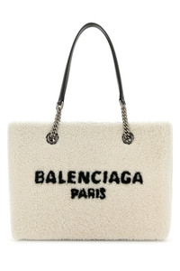 Handbag realized in shearling characterized by contrasting embroidered logo at the front. - Two metal chain handles with leather shoulder pads - Lined interior with a zip pocket - Protective metal feet at the base DETAILS Exterior: 100% Shearling Lining: 100% Fabric Finishing: Silver metal Made In Italy Width: 35 cm Height: 27 cm Depth: 14 cm Handle height: 23 cm