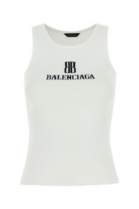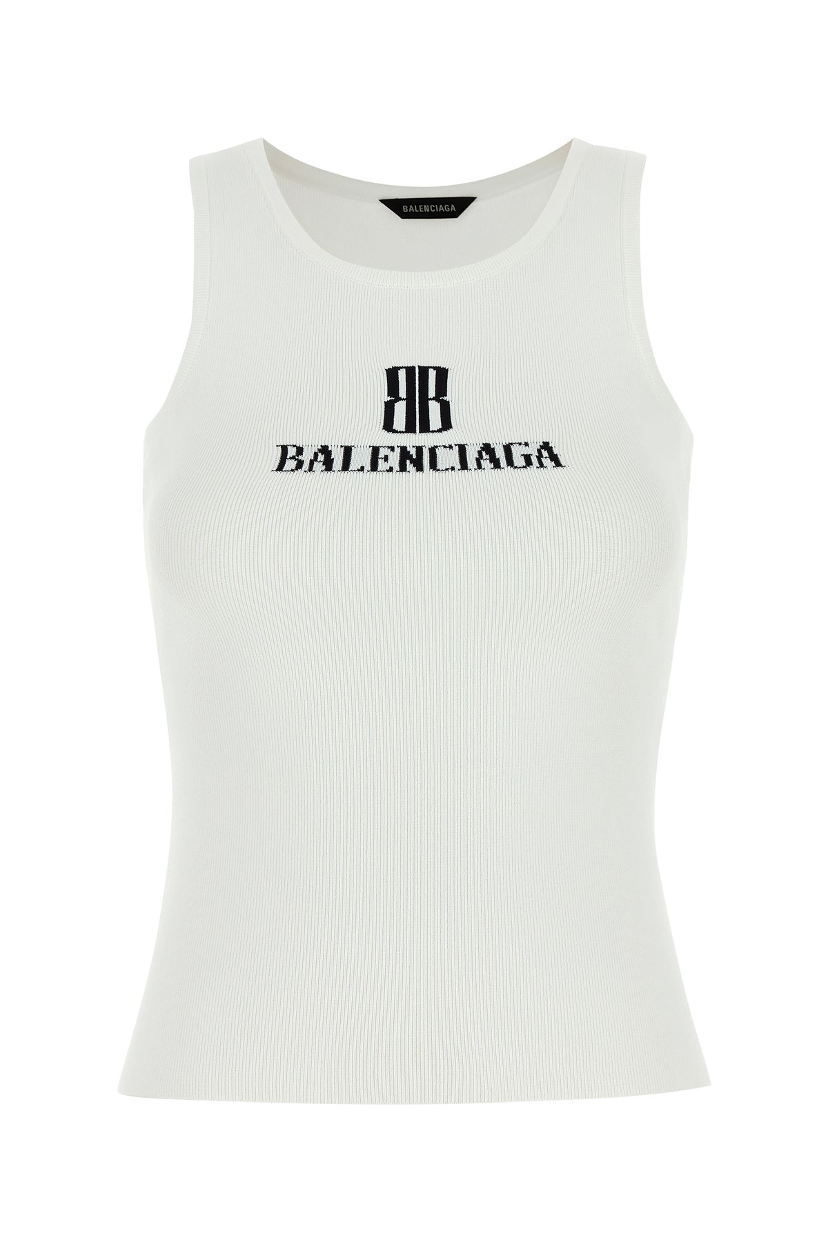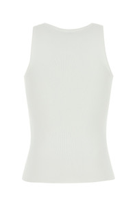 Tank top realized in viscose blend characterized by contrasting embroidered logo on the chest. - Round neckline DETAILS White viscose blend tank top Exterior: 86% Viscose 16% Polyester Made in italy Sample size: XS