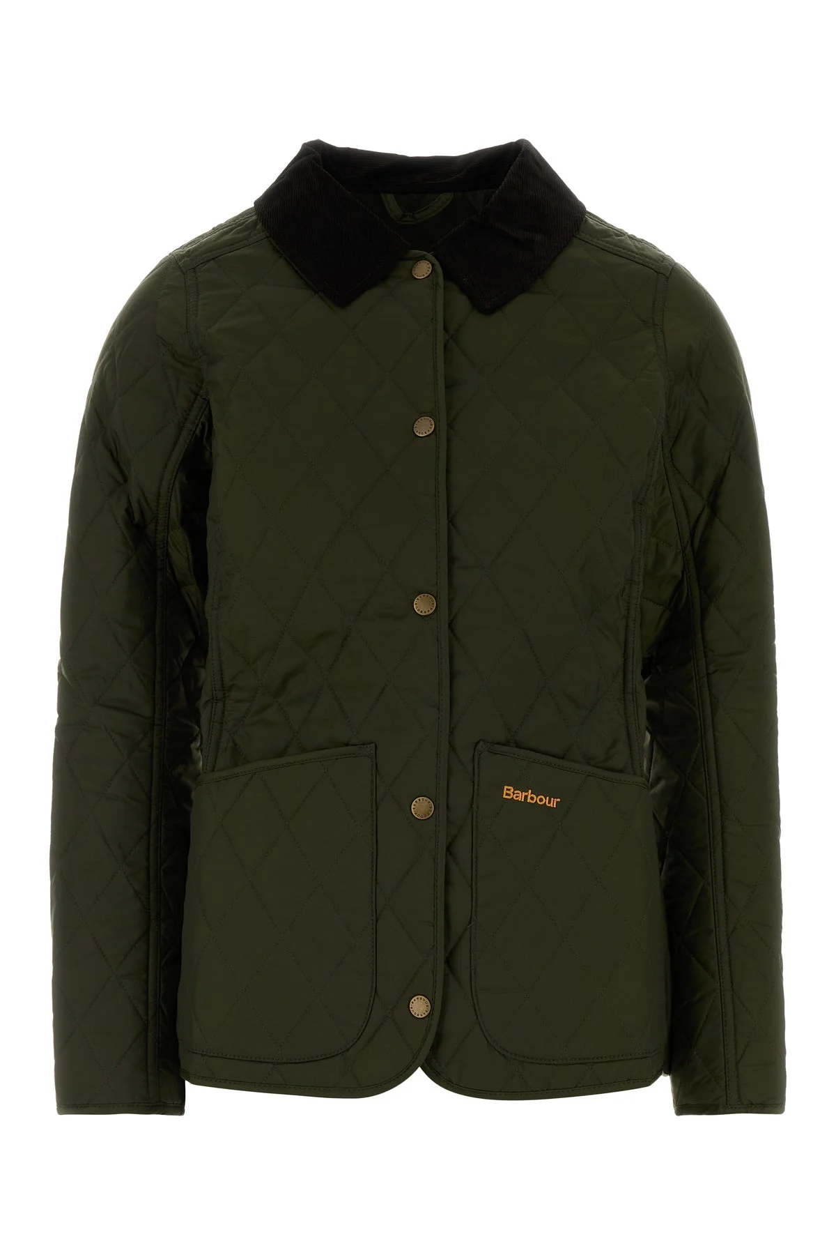 Slightly padded jacket realized in quilted nylon characterized by contrasting embroidered logo at the front. - Corduroy pointed collar - Buttons closure at the front - Two patch pockets at the front - Unlined DETAILS Army green nylon Annandale jacket Exterior: 100% Nylon Padding: 100% Polyester Made in moldova Sample size: 8