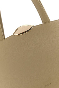Shopping bag realized in pebble deer leather characterized by embossed logo at the front. - Two tonal leather handles - Magnetic tab closure - A patch pocket at the back - Lined interior wit a zip pockets, two slit pockets and two credit card slots DETAILS Beige leather Serena shopping bag Exterior: 100% Deer Lining: 100% Leather Finishing: Platinum Made in italy Width: 40 cm Height: 24 cm Depth: 16,5 cm Handle height: 26 cm