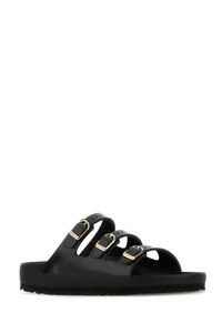 Slippers realized in polished-finish smooth leather characterized by embossed logo on the side. - Round toe - Three adjustable straps - Printed logo on the inside DETAILS Black leather Florida slippers Exterior: 100% Leather Interior: 100% Leather Sole: Rubber Made in germany