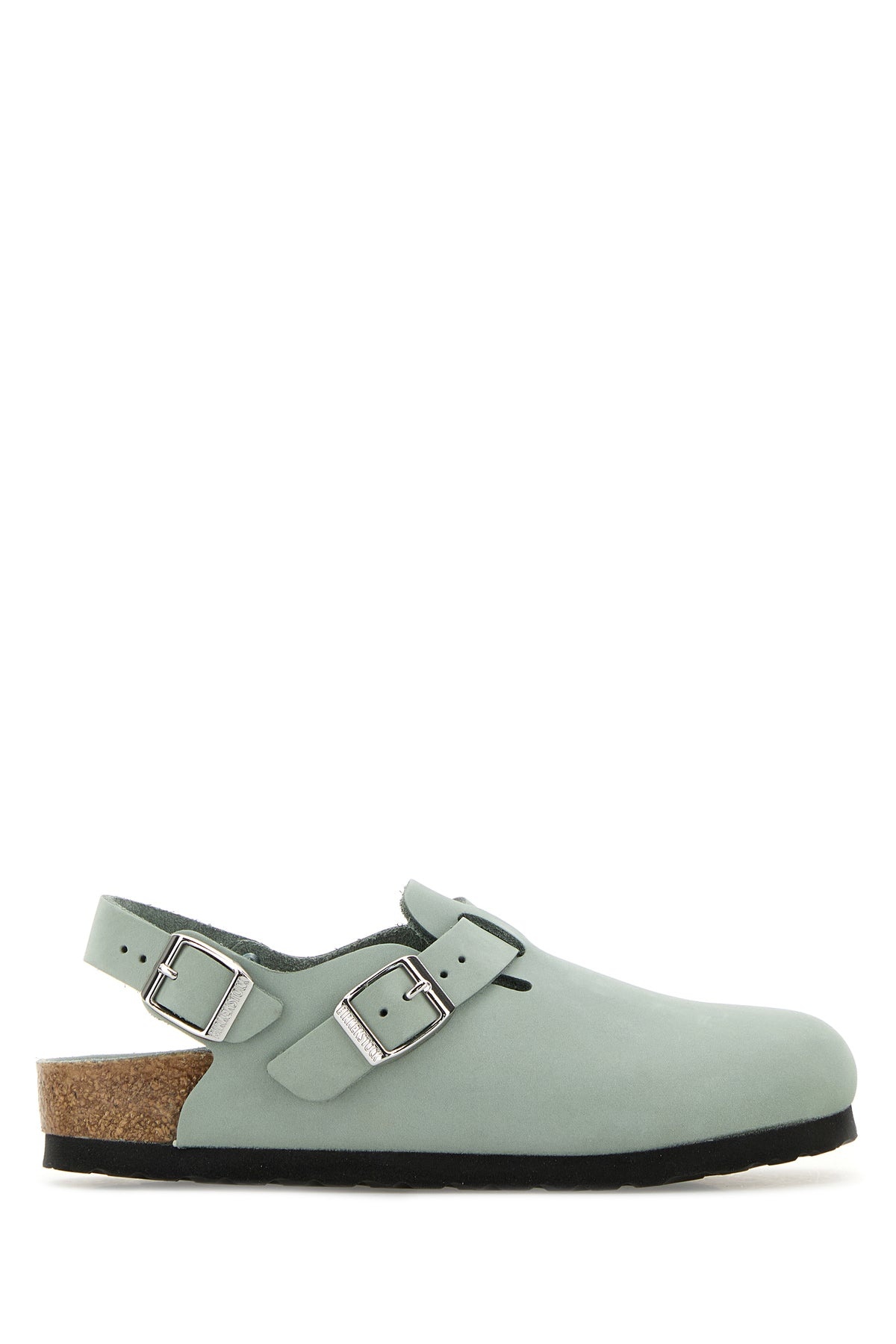 Slippers realized in suede characterized by embossed logo on the side enriched by adjustable strap on the instep. - Adjustable strap closure at the back - Round toe - Printed logo on the inside DETAILS Mint green suede Tokyo slippers Exterior: 100% Suede Interior: 100% Leather Sole: Rubber Made in germany
