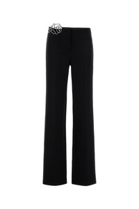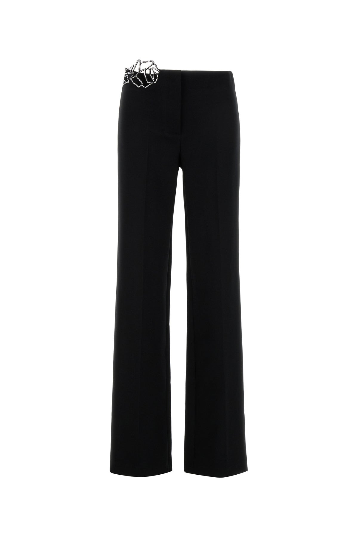 Pant realized in cady enriched by cut-out rose detail with rhinestones at the top. - Concealed zip and hook closure - Central ironed pleats DETAILS Black cady pant Exterior: 96% Polyester 4% Elastane Made in china Sample size: 38