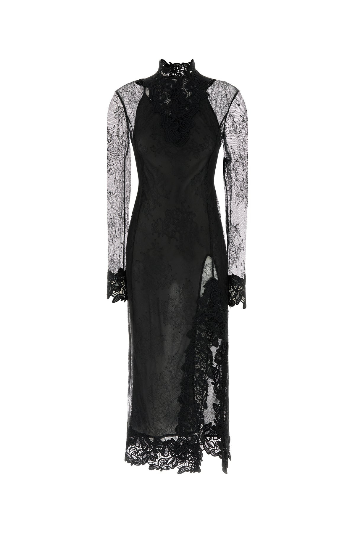 Fitted dress realized in lace characterized by lateral slit on the hemline. - Round neckline - Concealed zip closure at the back - Petticoat included DETAILS Black lace dress Exterior: 100% Fabric Lining: 100% Fabric Made in italy Sample size: 38