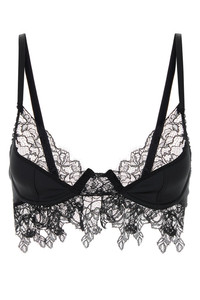 Underwired bra realized in stretch jersey enriched by tonal lace inserts. - Adjustable thin shoulder straps - Hook closure at the back - Unlined DETAILS Black stretch jersey bra Exterior: 85% Polyester 35% Elastane Made in italy Sample size: 38