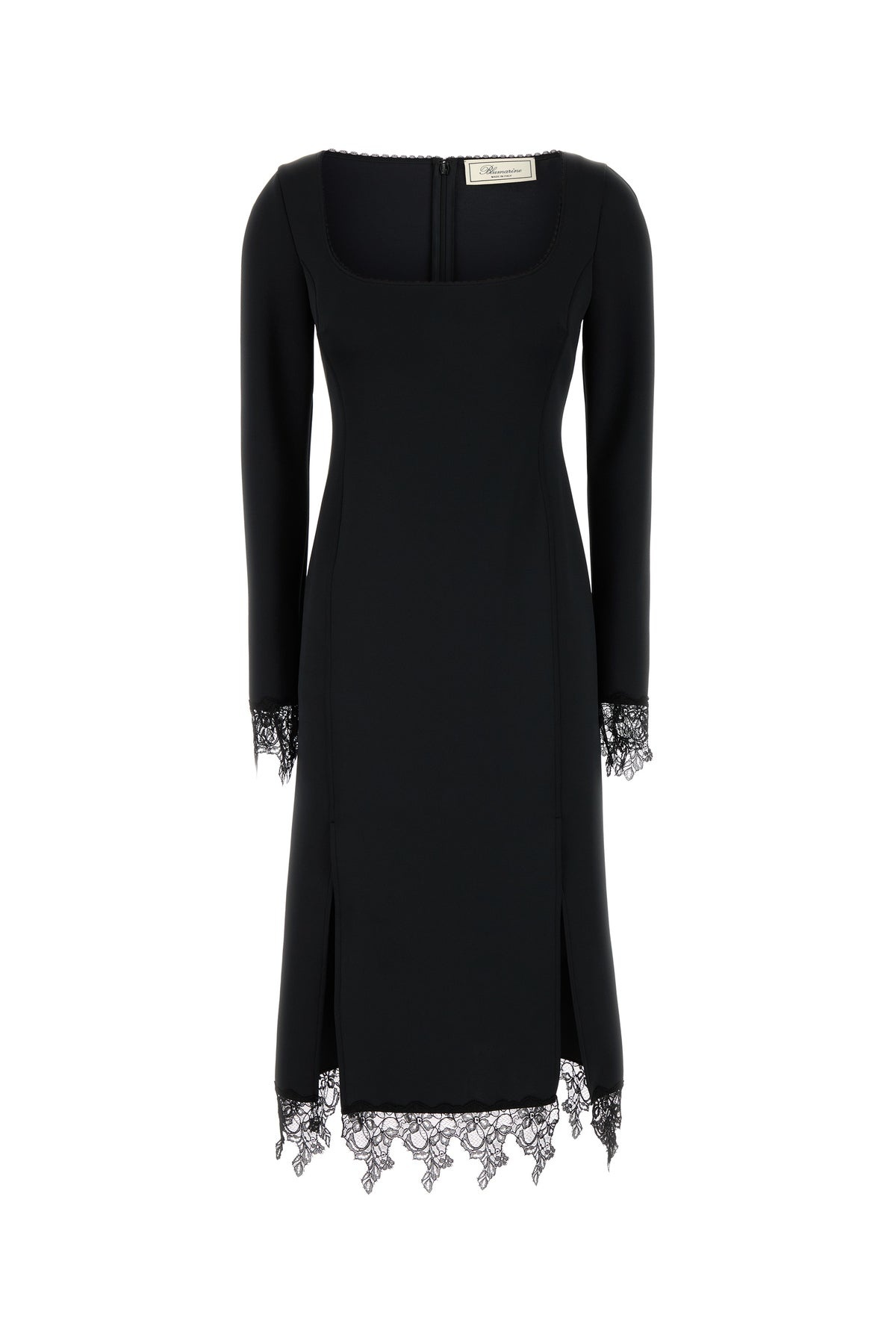 Midi-length dress realized in stretch jersey enriched by tonal lace inserts on the cuffs and on the hemline. - Squared neckline - Concealed zip closure at the back - Lateral slits at the front - Unlined DETAILS Black stretch jersey dress Exterior: 85% Polyester 15% Elastane Made in italy Sample size: 42