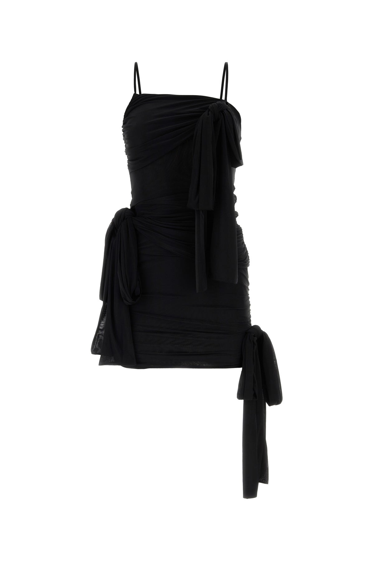 Mini dress realized in stretch nylon characterized by tonal fabric laces to tie at the front. - Asymmetric neckline - Thin shoulder straps - Sleeveless - Lined DETAILS Exterior: 77% Nylon 23% Elastane Lining: 77% Nylon 23% Elastane Made In Italy Sample size: 38