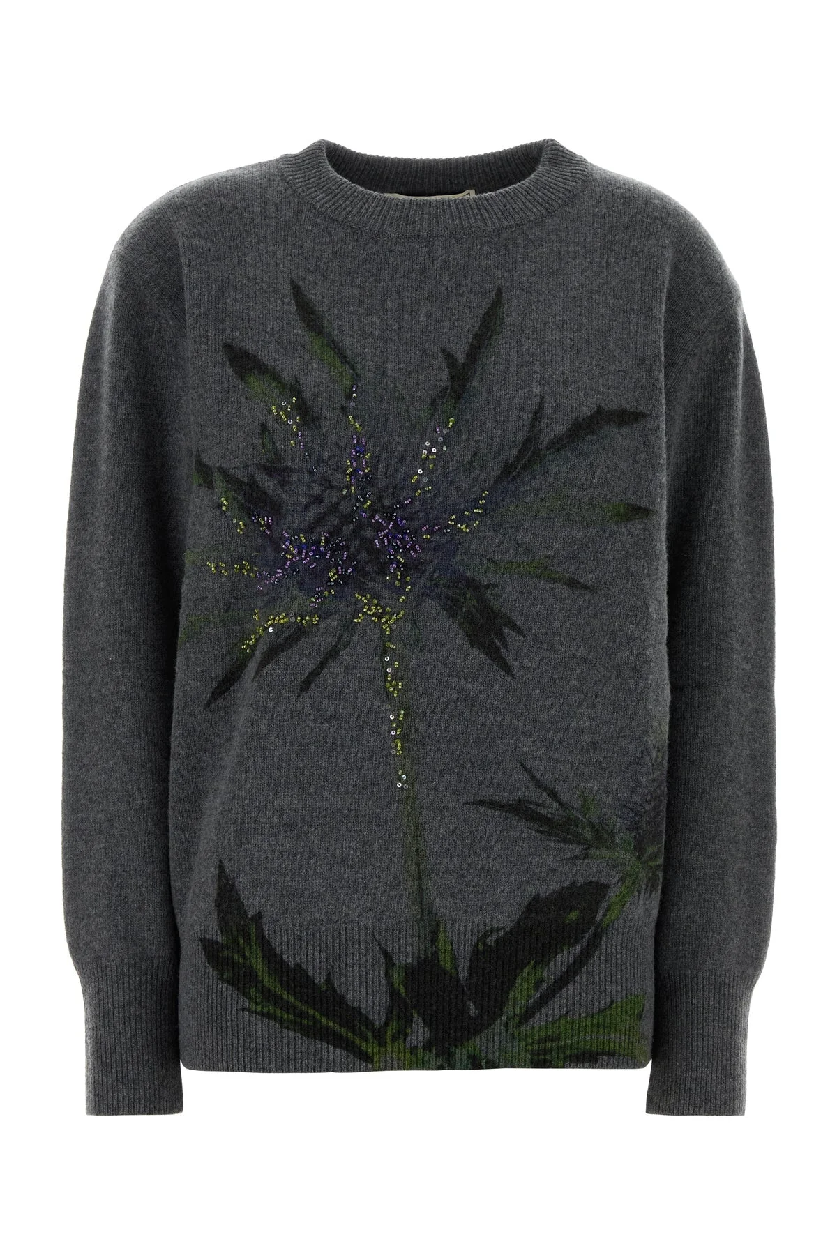 Sweater realized in wool blend characterized by Cardo print with beads at the front. - Ribbed crew-neck, cuffs and hemline - Loose fit DETAILS Dark grey wool blend sweater Exterior: 80% Wool 20% Nylon Made in china Sample size: XS