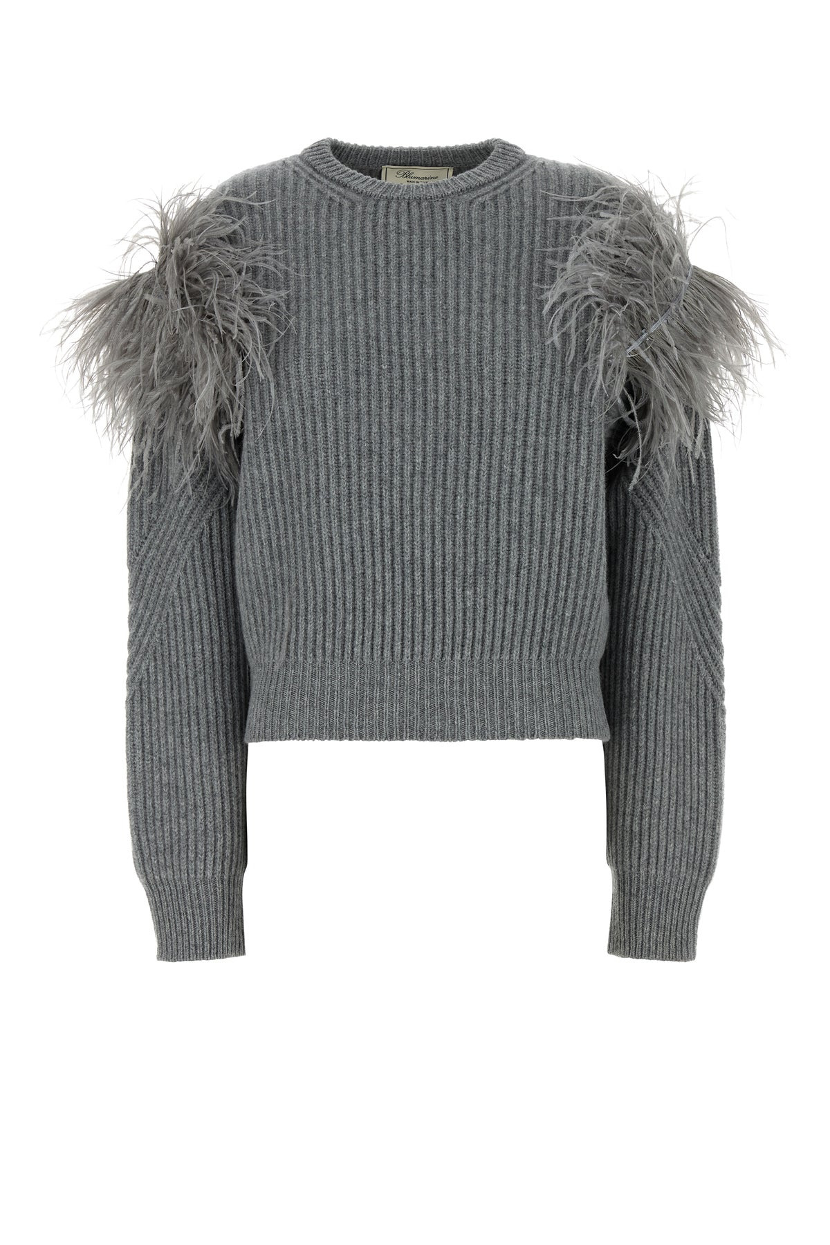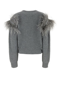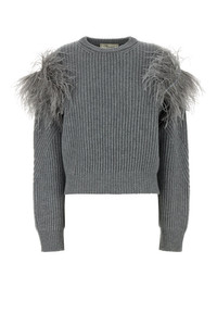 Sweater realized in pure wool enriched by feathers at the top. - Ribbed crew-neck, cuffs and hemline DETAILS Grey wool sweater Exterior: 100% Wool Made in italy Sample size: 40