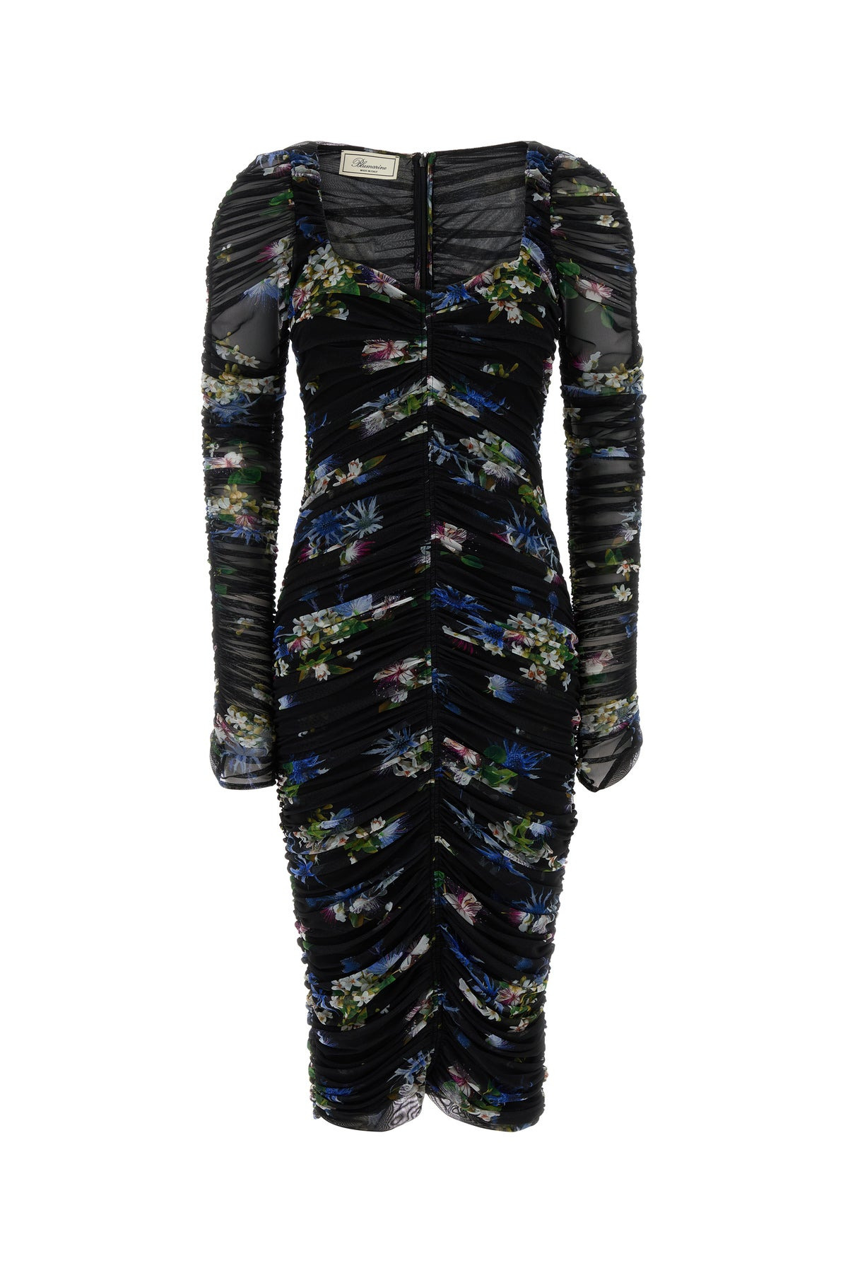 Fitted dress realized in stretch tulle characterized by floral print on the entire surface. - Round neckline - Concealed zip closure at the back - Gatherings on the entire surface - Lined DETAILS Printed stretch tulle dress Exterior: 94% Nylon 6% Elastane Lining: 75% Nylon 25% Elastane Made in italy Sample size: 40