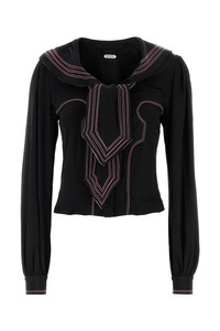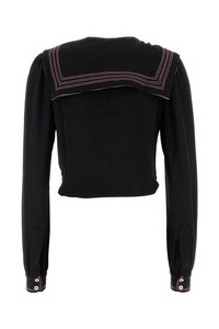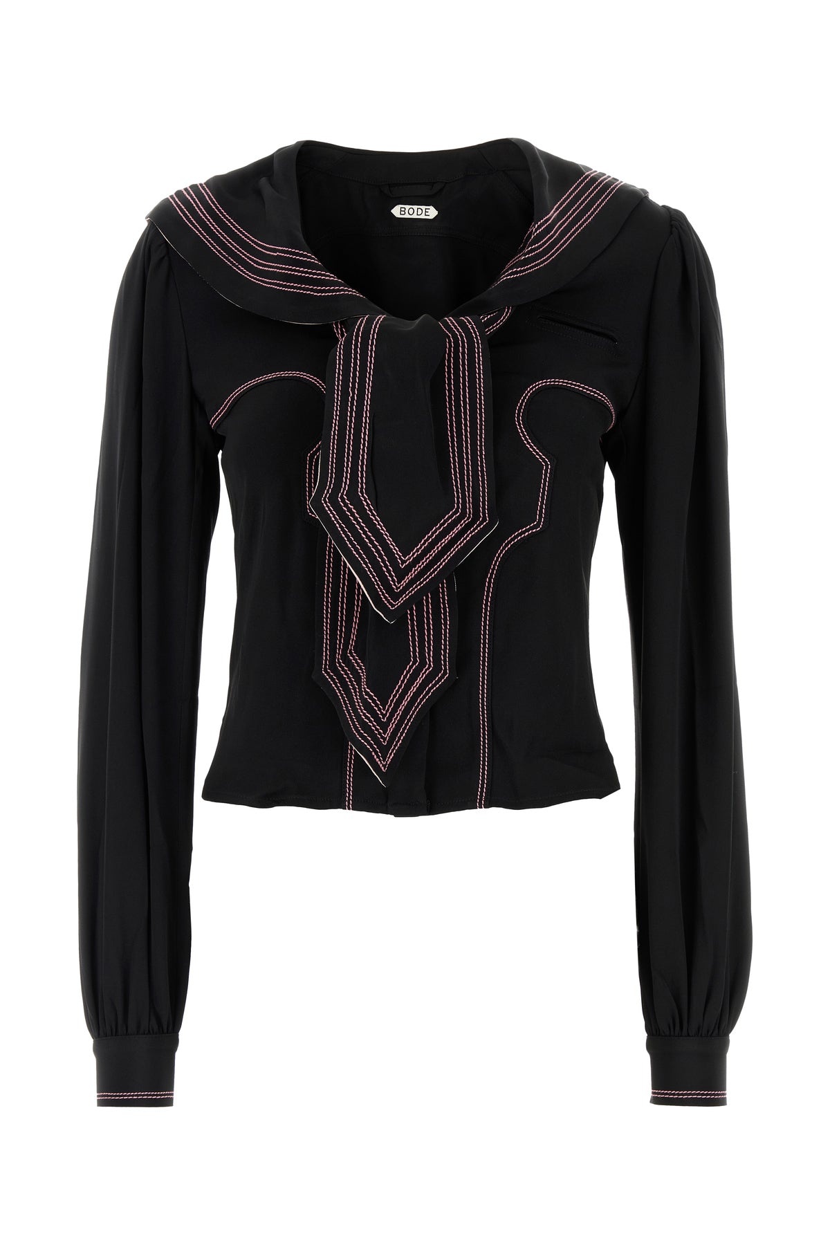 Shirt realized in pure silk characterized by contrasting stitchings. - Peculiar collar - Laces to tie at the neck - Concealed buttons closure - Angle cuffs with buttons - Rear yoke DETAILS Black silk Seafarer shirt Exterior: 100% Silk Made in india Sample size: XS