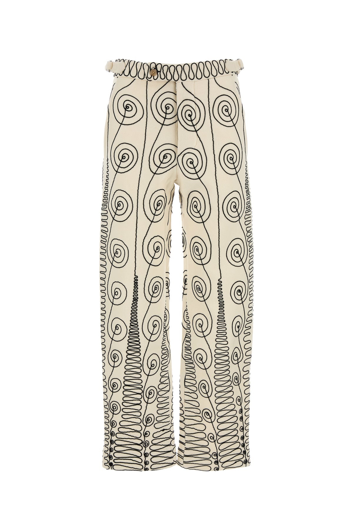Pant realized in pure wool characterized by peculiar embroidery on the entire surface. - Adjustable straps at the waist - Concealed zip and single visible button closure - Slant pockets and two flap pockets at the back DETAILS Embroidered wool Quillwork pant Exterior: 100% Wool Made in india Sample size: 28