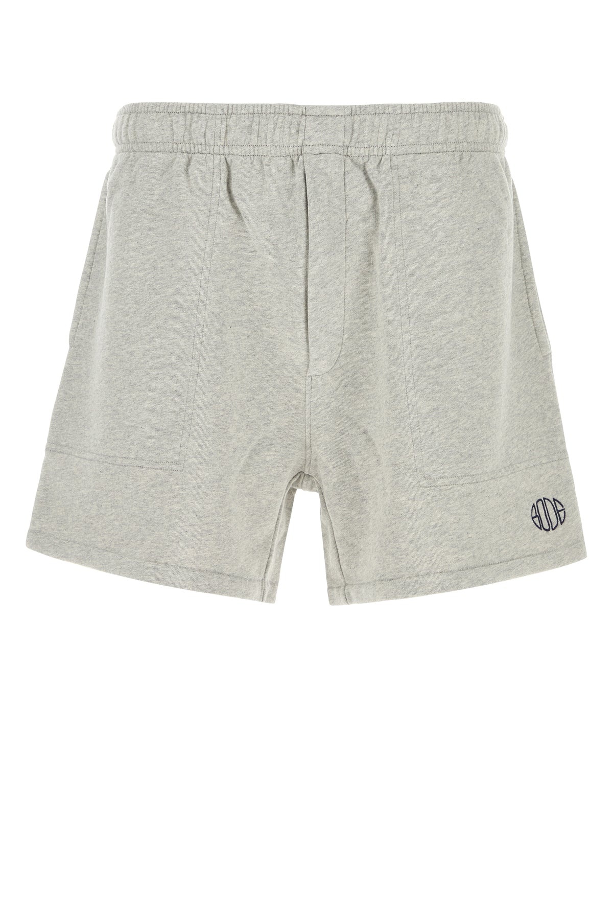 Bermuda shorts realized in pure cotton characterized by contrasting embroidered logo on the hemline. - Elastic waist with drawstring - Opening with zip at the front - Seam pockets and a patch pocket at the back DETAILS Grey cotton bermuda shorts Exterior: 100% Cotton Made in portugal Sample size: M