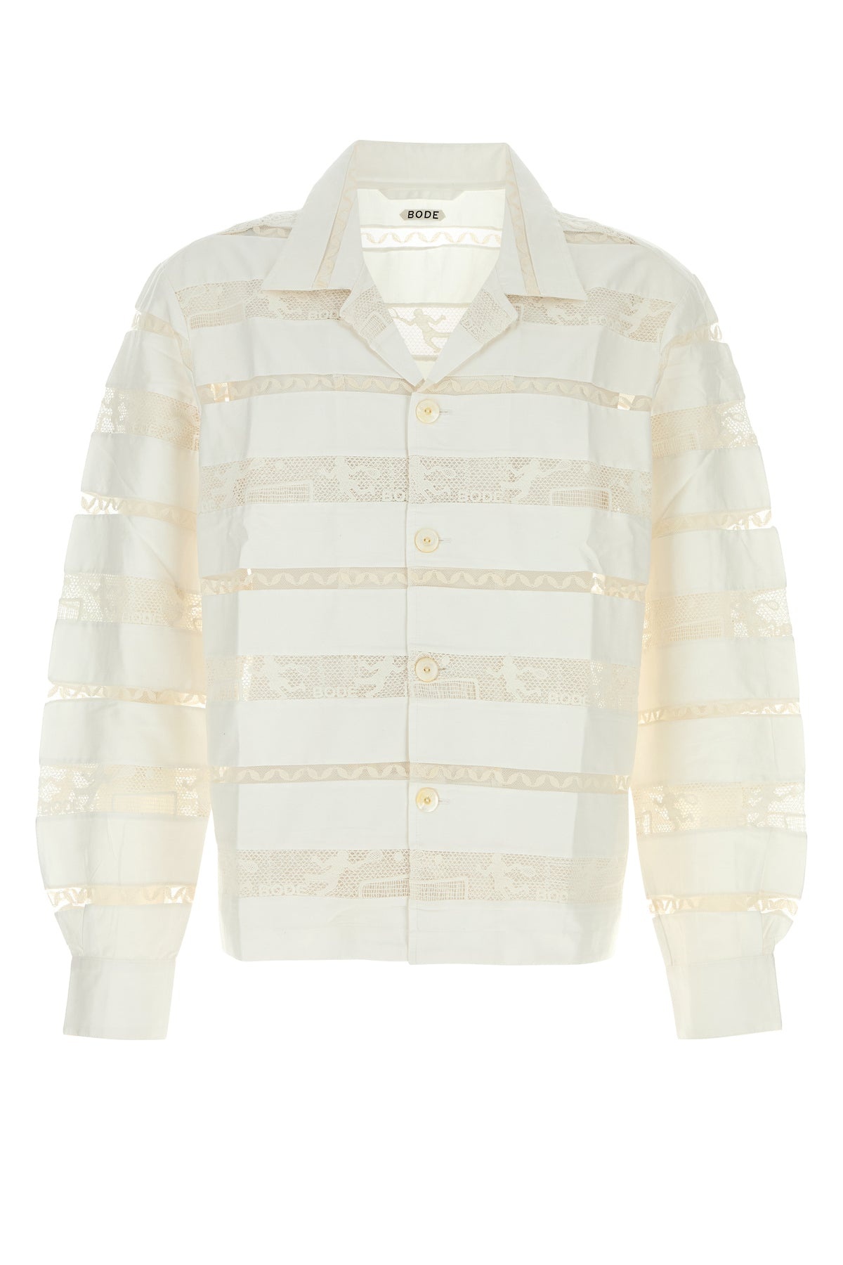 Shirt realized in pure cotton poplin with lace insert. - Notched collar - Buttons closure - Angle cuffs with buttons DETAILS White poplin shirt Exterior: 100% Cotton Made in india Sample size: M