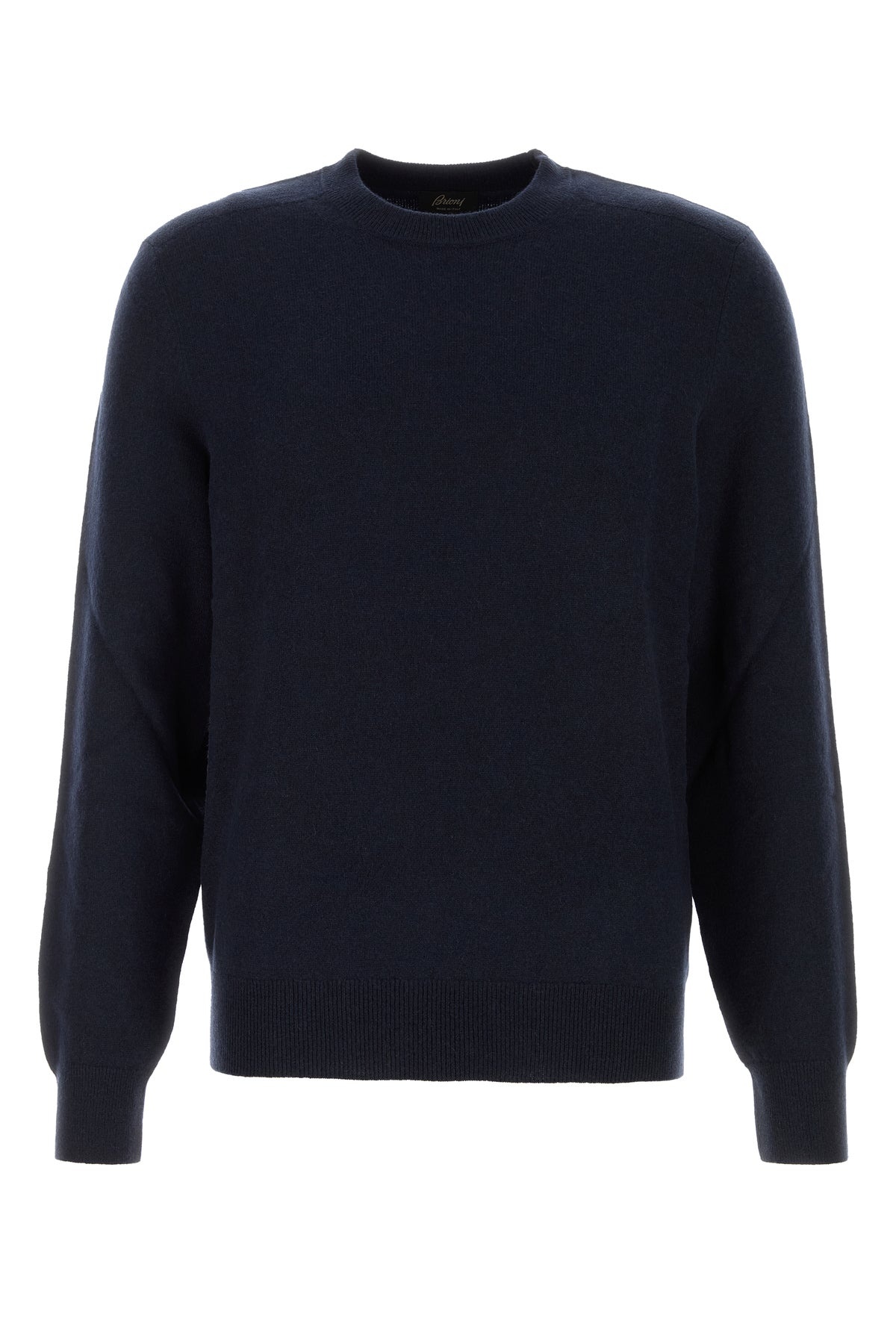 Sweater realized in pure cashmere. - Ribbed crew-neck, cuffs and hemline DETAILS Dark blue cashmere sweater Exterior: 100% Cashmere Made in italy Sample size: 48