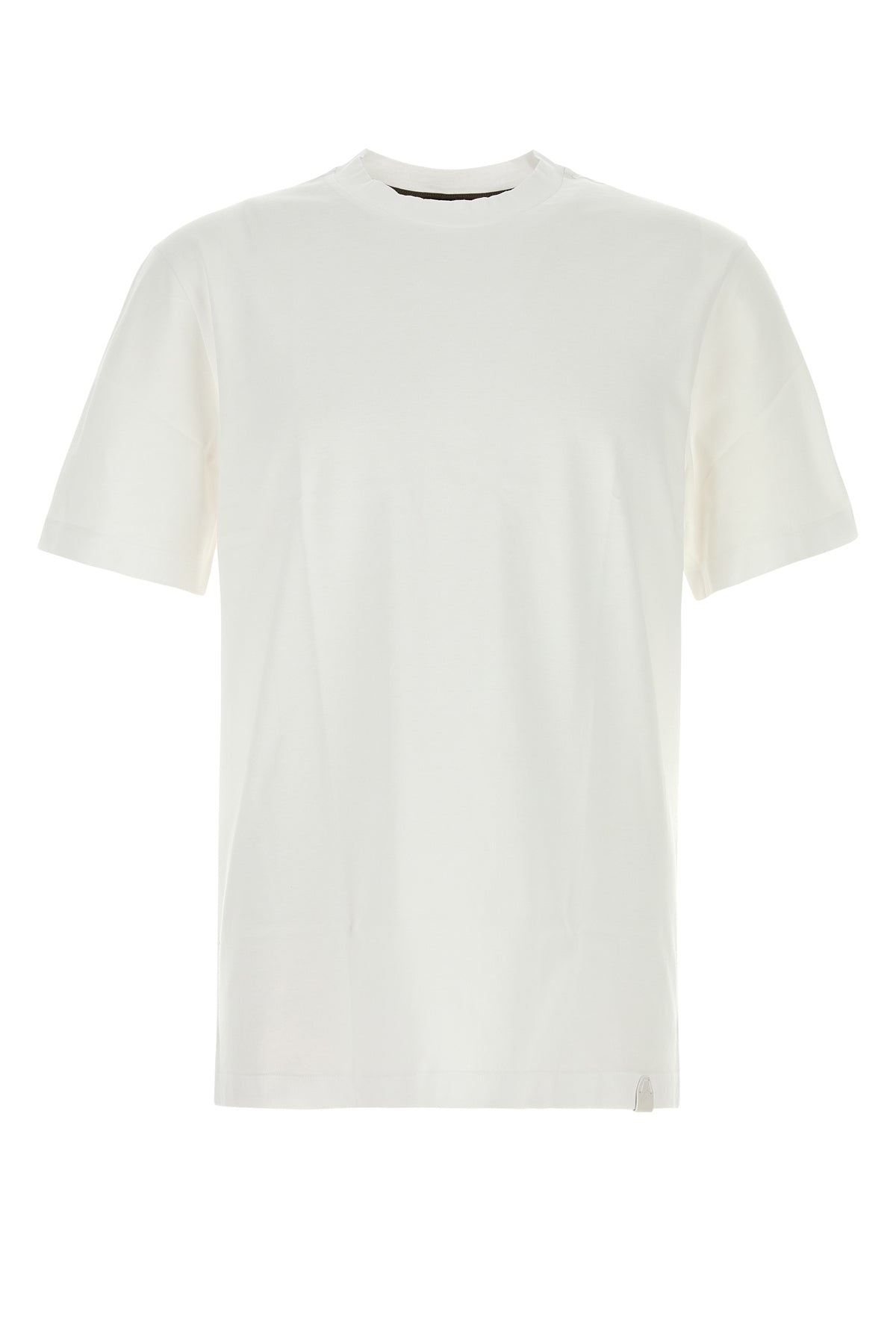 T-shirt realized in pure cotton enriched by logoed patch on the hemline. - Ribbed crew-neck DETAILS White cotton t-shirt Exterior: 100% Cotton Made in italy Sample size: M