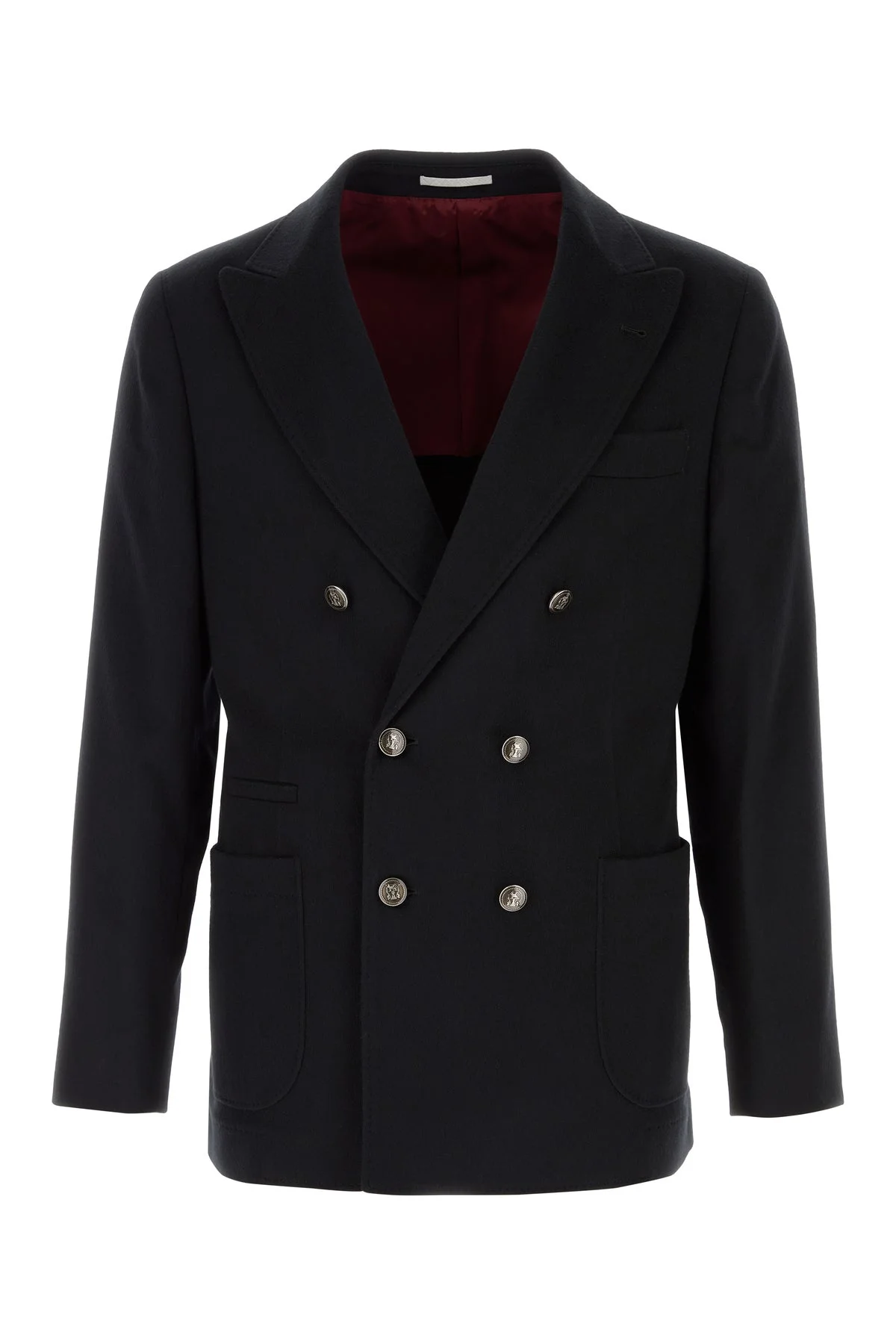 Blazer realized in wool and cashmere. - Peak lapels - Double-breasted closure by metal logoed buttons - Chest pockets, a slit pocket and two patch pockets at the front - Buttoned cuffs - Lateral slits at the back - Partially lined interior with three slit pockets DETAILS Black wool blend blazer Exterior: 95% Wool 5% Cashmere Lining: 100% Cupro Made in italy Sample size: 46