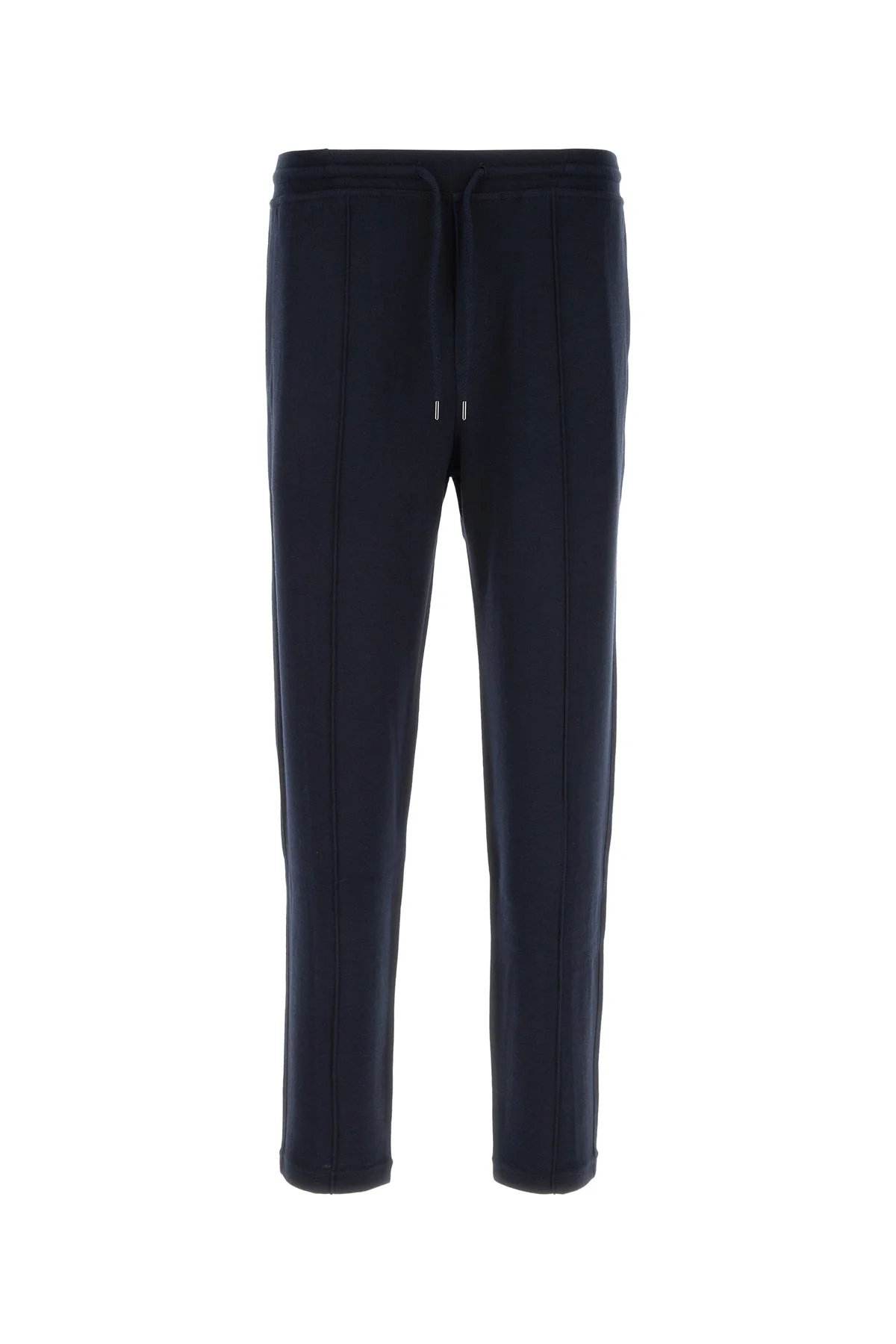 Pant realized in cashmere blend. - Drawstring elastic waist - Two slit pockets at the front and two slit pockets at the back - Central seamed pleats DETAILS Dark blue cashmere blend pant Exterior: 67% Cashmere 29% Silk 4% Nylon Made in italy Sample size: M