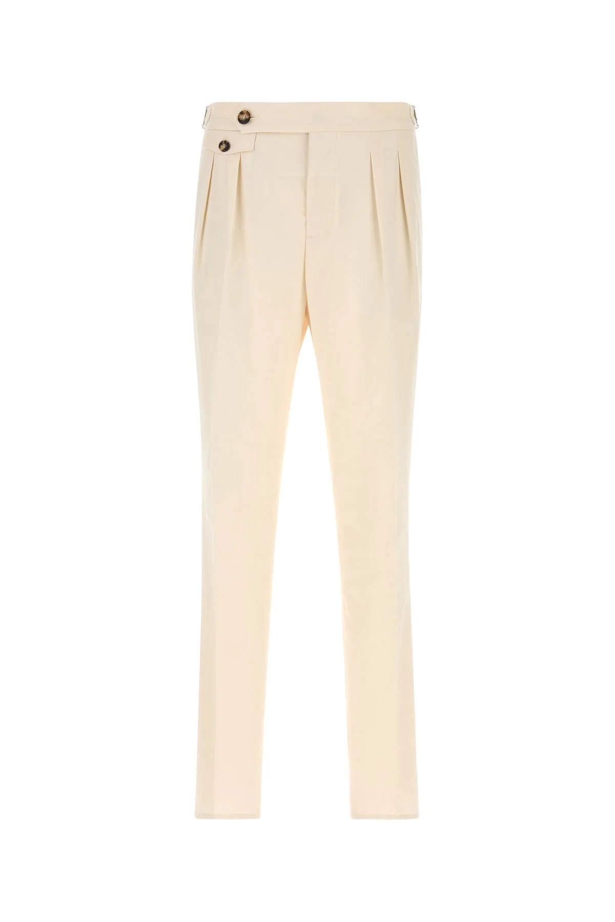 Pant realized in pure cotton characterized by inverted pleats. - Adjustable straps at the waist - Concealed zip and single visible button closure - Slant pockets and two slit pockets at the back DETAILS Ivory cotton pant Exterior: 100% Cotton Made in italy Sample size: 48