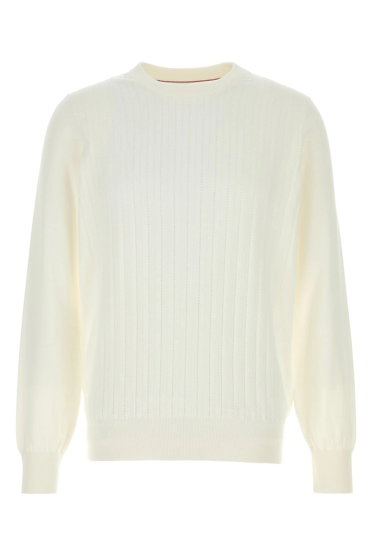 Sweater realized in pure cotton. - Ribbed crew-neck, cuffs and hemline DETAILS White cotton sweater Exterior: 100% Cotton Made in italy Sample size: 48