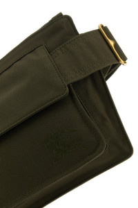 Belt bag realized in canvas characterized by tonal Equestrian Knight embroidery at the front. - Adjustable tonal fabric belt - Zip closure - A flap pocket at the front - Lined DETAILS Army green canvas Trench belt bag Exterior: 100% Fabric Lining: 100% Fabric Finishing: Antiqued golden metal Made in italy Width: 33,5 cm Height: 18 cm