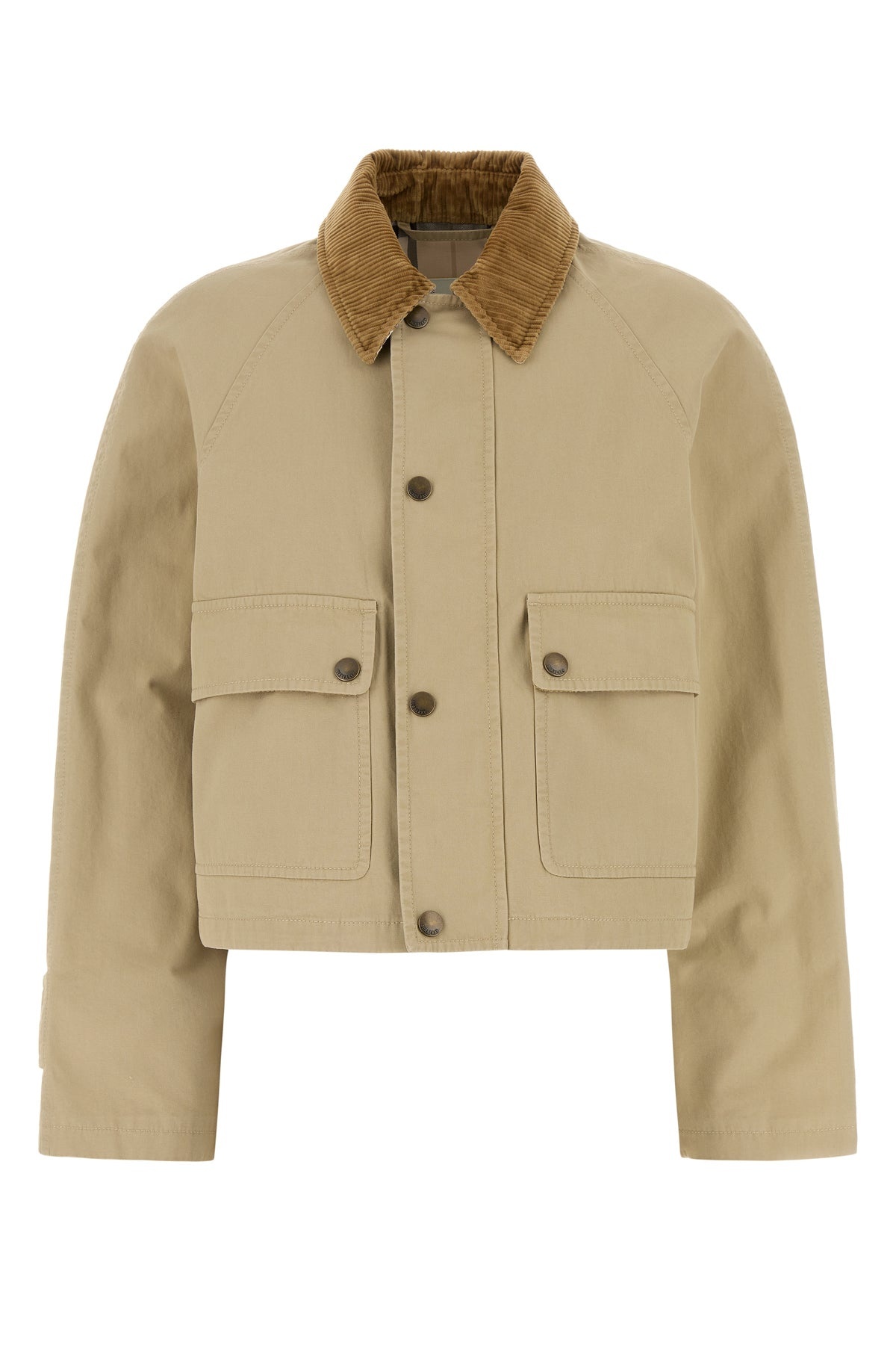 Jacket realized in pure cotton characterized by ribbed collar. - Concealed zip and visible buttons closure - Two flap pockets at the front - Adjustable straps on the cuffs - Lined interior with a patch pocket DETAILS Beige cotton jacket Exterior: 100% Cotton Lining: 100% Cotton Made in romania Sample size: 8