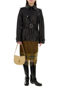 Shoulder bag realized in pebble calf leather characterized by peculiar snap-fit closure and embossed Equestrian Knight at the back. - Adjustable tonal leather flat handle - A slit pocket under the flap and a slit pocket at the back - Lined interior with two compartments DETAILS Beige leather small Rocking Horse shoulder bag Exterior: 100% Calf Lining: 100% Lamb Finishing: Golden metal Made in italy Width: 21 cm Height: 19 cm Depth: 10 cm Min handle height: 26,5 cm Max handle height: 55 cm