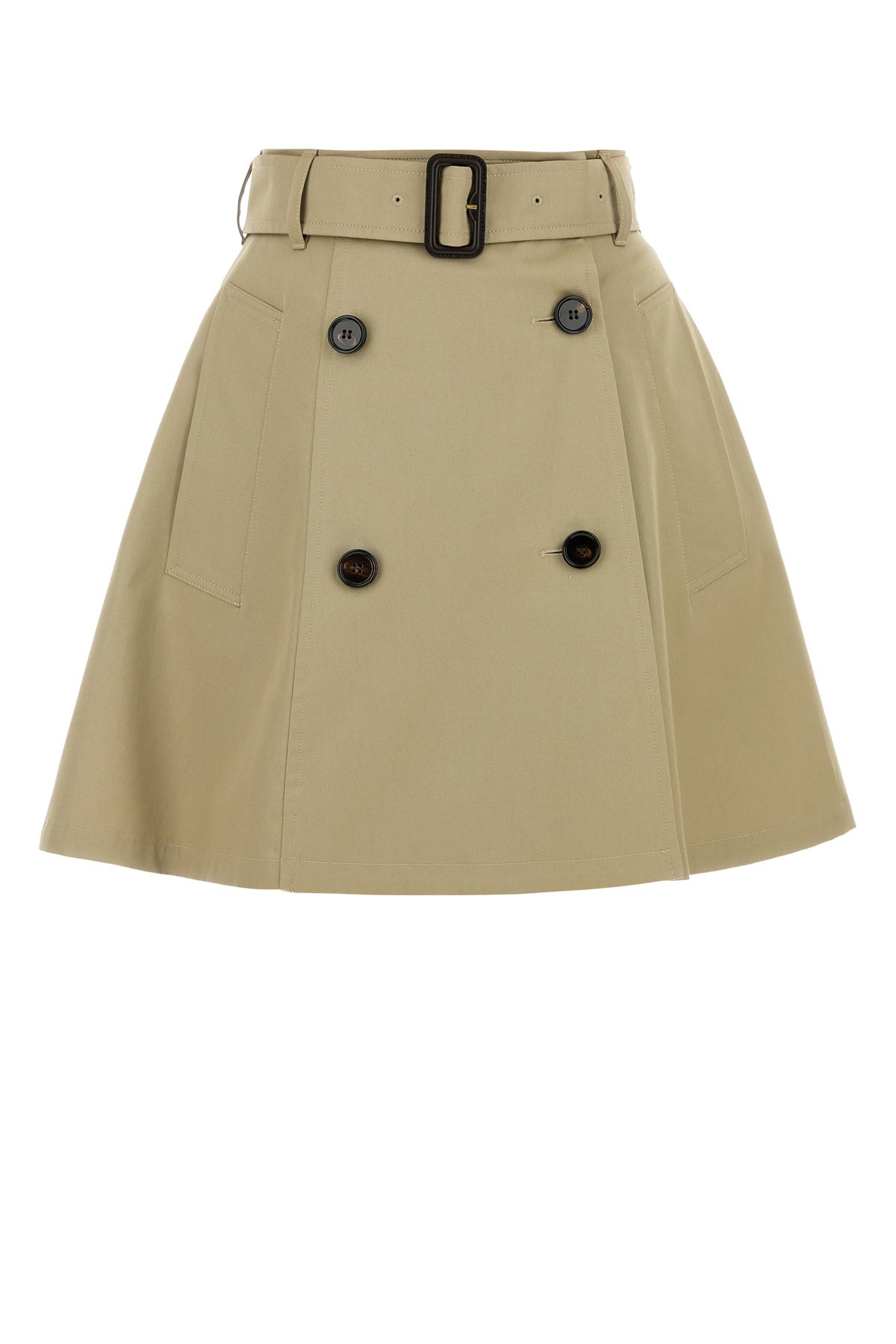 Flared skirt realized in pure cotton twill enriched by tonal fabric belt at the waist. - Wrap closure by buttons - Two slit pockets at the front - Unlined DETAILS Beige twill skirt Exterior: 100% Cotton Made in albanie Sample size: 4