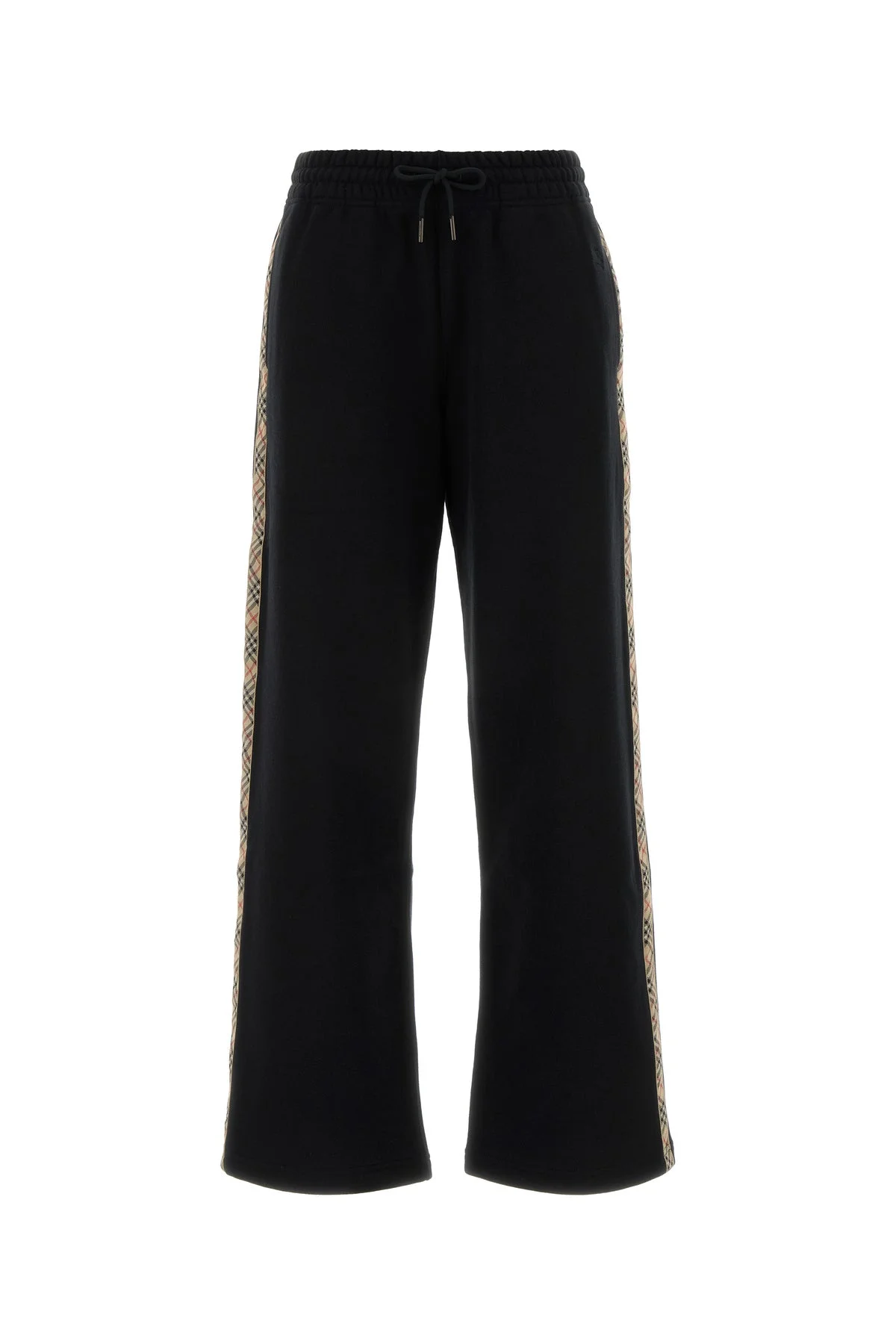 Joggers realized in pure cotton characterized by Burberry Check embroidery on the sides and Equestrian Knight embroidery at the front. - Elastic waist with drawstring - Seam pockets DETAILS Black cotton joggers Exterior: 100% Cotton Made in portugal Sample size: XS