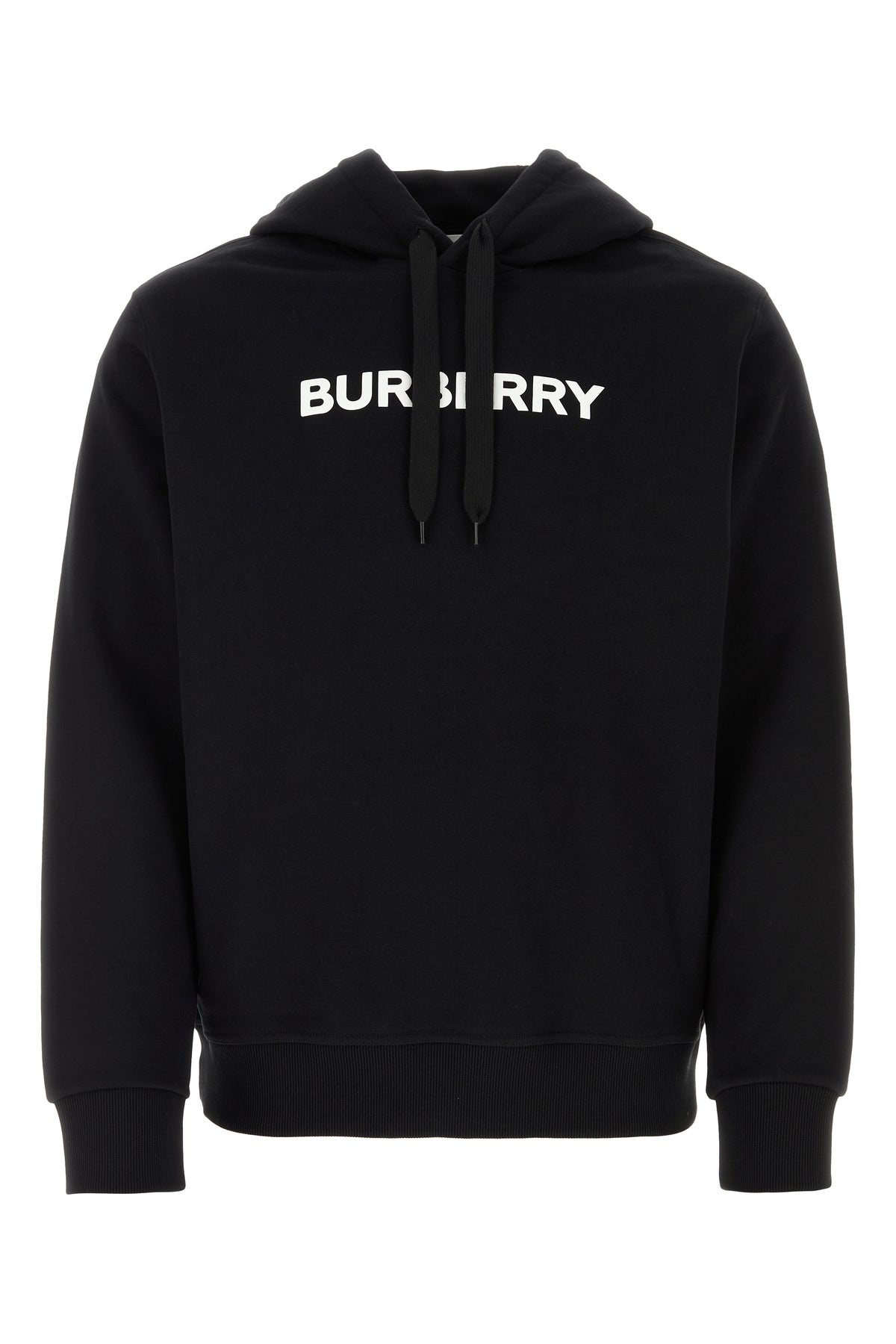 Sweatshirt realized in pure cotton characterized by contrasting printed logo at the front. - Drawstring hood - Ribbed cuffs and hemline DETAILS Black cotton sweatshirt Exterior: 100% Cotton Made in china Sample size: M
