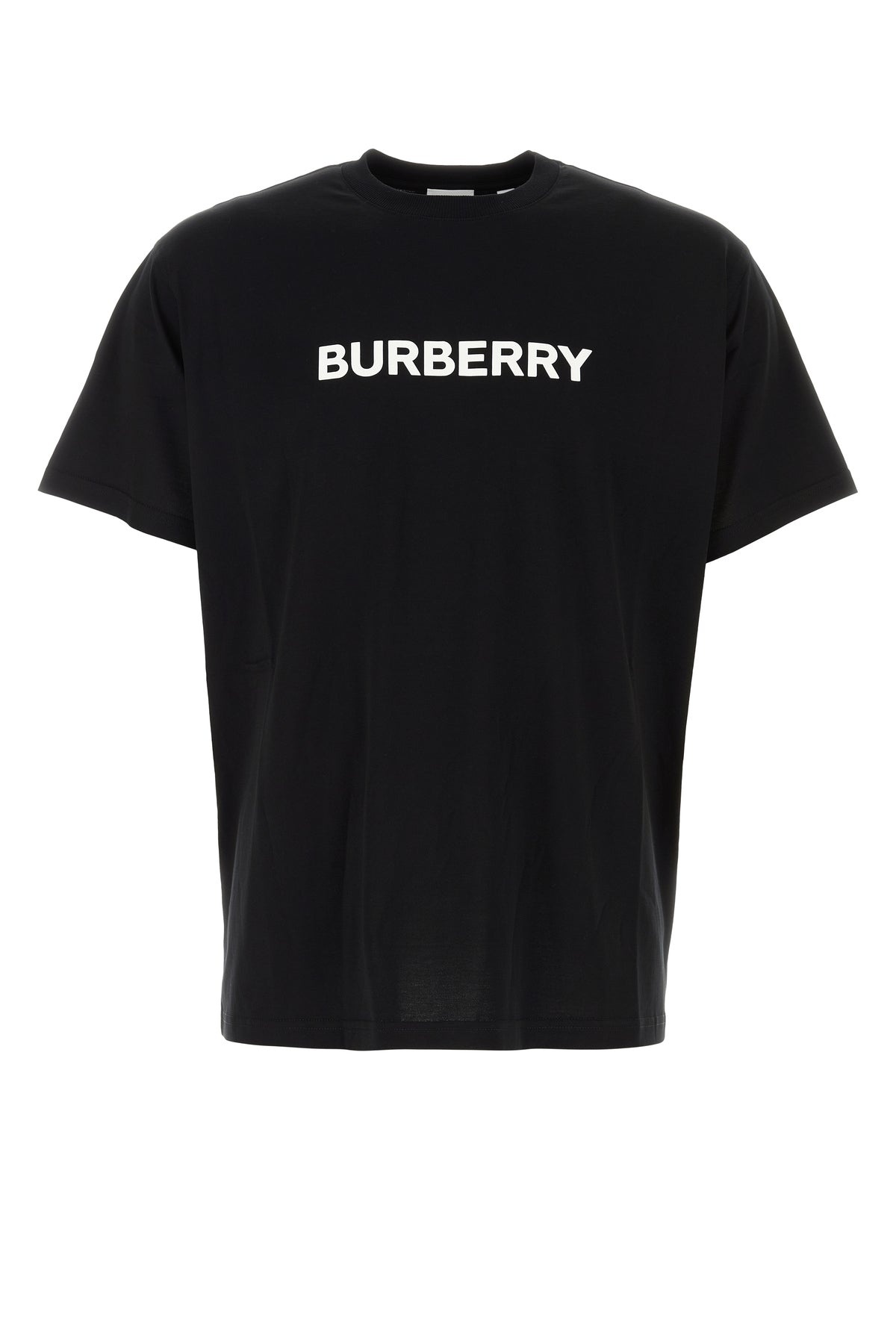 T-shirt realized in pure cotton characterized by rubberized printed logo on the chest. - Ribbed crew-neck - Loose fit DETAILS Black cotton t-shirt Exterior: 100% Cotton Made in portugal Sample size: M