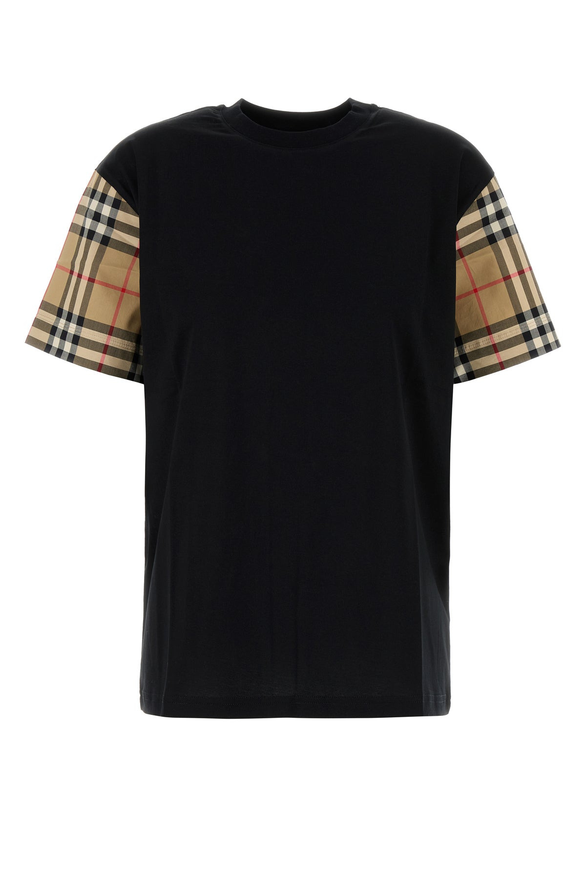 T-shirt realized in pure cotton with contrasting inserts on the sleeves. - Ribbed crew-neck DETAILS Black cotton t-shirt Exterior: 100% Cotton Made in portugal Sample size: XS