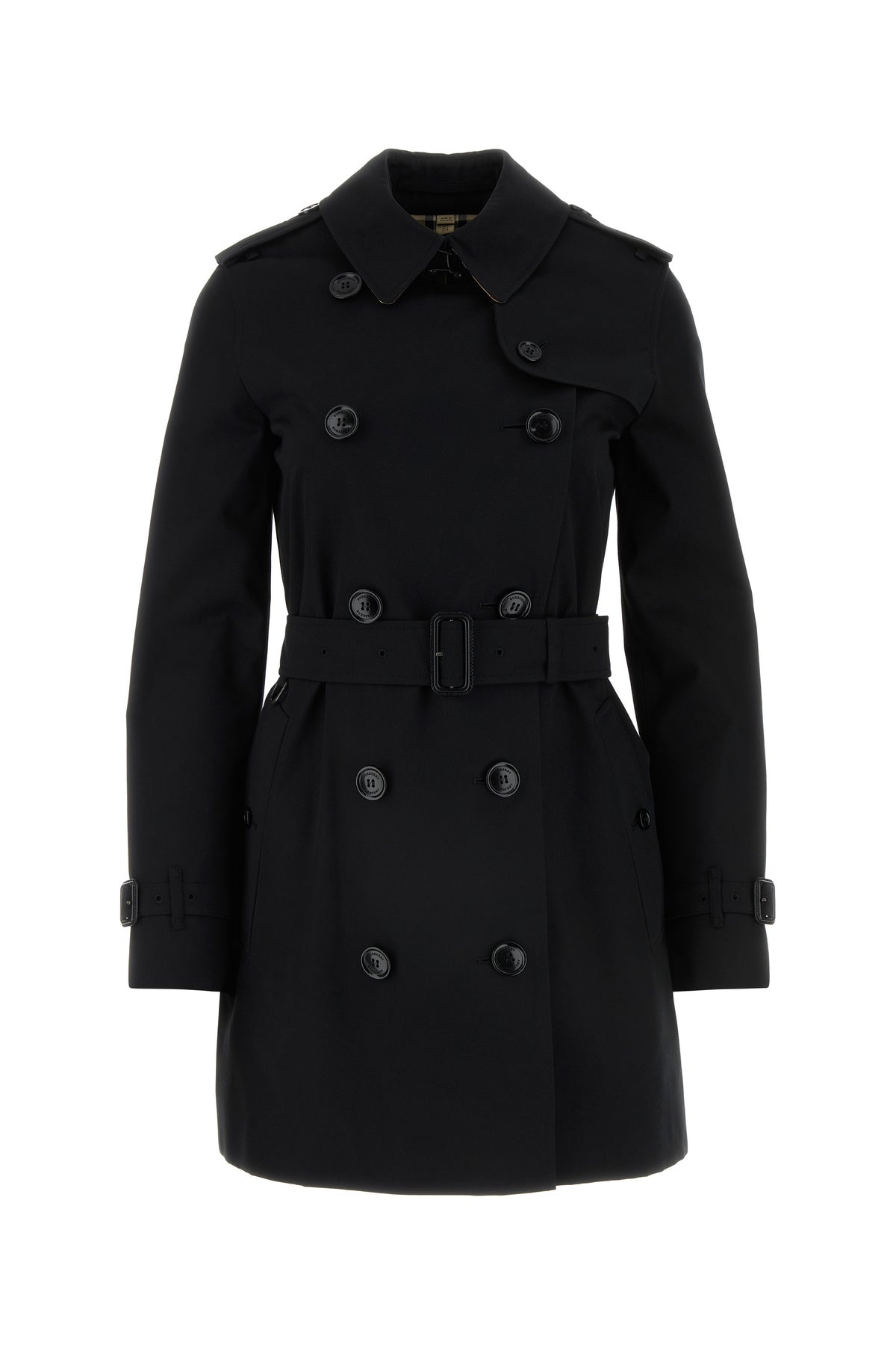 Medium-cut trench realized in pure cotton characterized by gun flap and storm shield. - Pointed collar with hook - Double-breasted closure by buttons - Epaulettes - Two slit pockets at the front - Adjustable straps on the cuffs - Adjustable detachable belt at waist - A central slit at the back - Lined DETAILS Black cotton trench Exterior: 100% Cotton Lining: 100% Cotton Made in england Sample size: 4