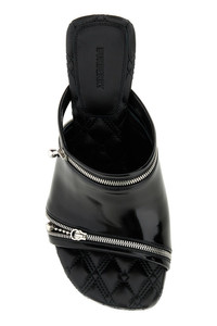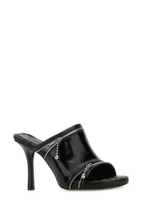 Mules realized in polished-finish smooth calf leather enriched by decorative zip at the front. - Squared toe - Embossed logo on the inside - Stiletto heel DETAILS Black leather Peep mules Exterior: 100% Calf leather Interior: 100% Leather Sole: Leather Made in italy Heel height: 8,5 cm