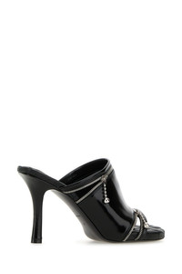 Black leather Peep mules