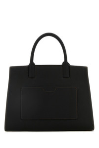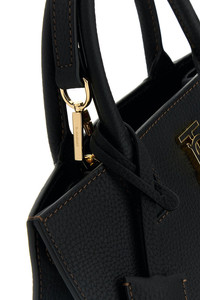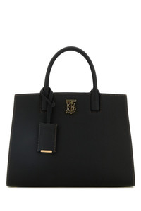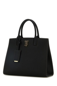 Shopping bag realized in pebble leather enriched by metal TB detail at the front and detachable leather and metal detail on the handle. - Two tonal leather round handles - Adjustable detachable tonal leather shoulder strap - A patch pocket at the back - Lateral compression buttons - Lined interior with a zip pocket and a patch pocket - Protective metal feet at the base DETAILS Black leather shopping bag Exterior: 100% Leather Lining: 100% Leather Finishing: Golden metal Made in Width: 27 cm Height: 19,5 cm Depth: 10 cm Handle height: 9 cm Min shoulder strap length: 49 cm Max shoulder strap length: 53 cm