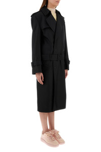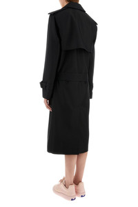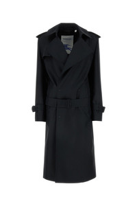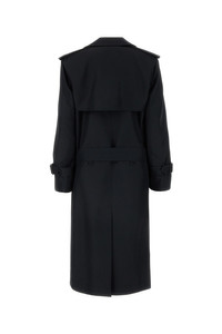 Trench coat realized in silk blend characterized by gun flap and storm shield. - Lapels - Snap buttons closure at the front - Two slit pockets at the front - Belt loops at the waist - Central slit at the back - Detachable belt - Lined DETAILS Black silk blend trench coat Exterior: 60% Silk 40% Polyester Lining: 100% Viscose Made in portugal Model is 178 cm and is wearing a size 6