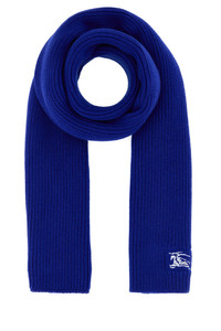 Scarf realized in ribbed pure cashmere characterized by contrasting Equestrian Knight Design embroidery on the hemline. DETAILS Blue cashmere scarf Exterior: 100% Cashmere Made in scotland Length: 180 cm Height: 25 cm