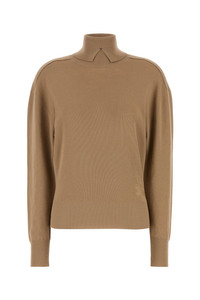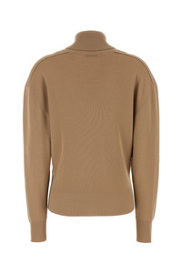 Sweater realized in pure wool characterized by tonal Equestrian Knight embroidery on the hemline. - Turtleneck - Ribbed cuffs and hemline DETAILS Camel wool sweater Exterior: 100% Wool Made in romania Sample size: S