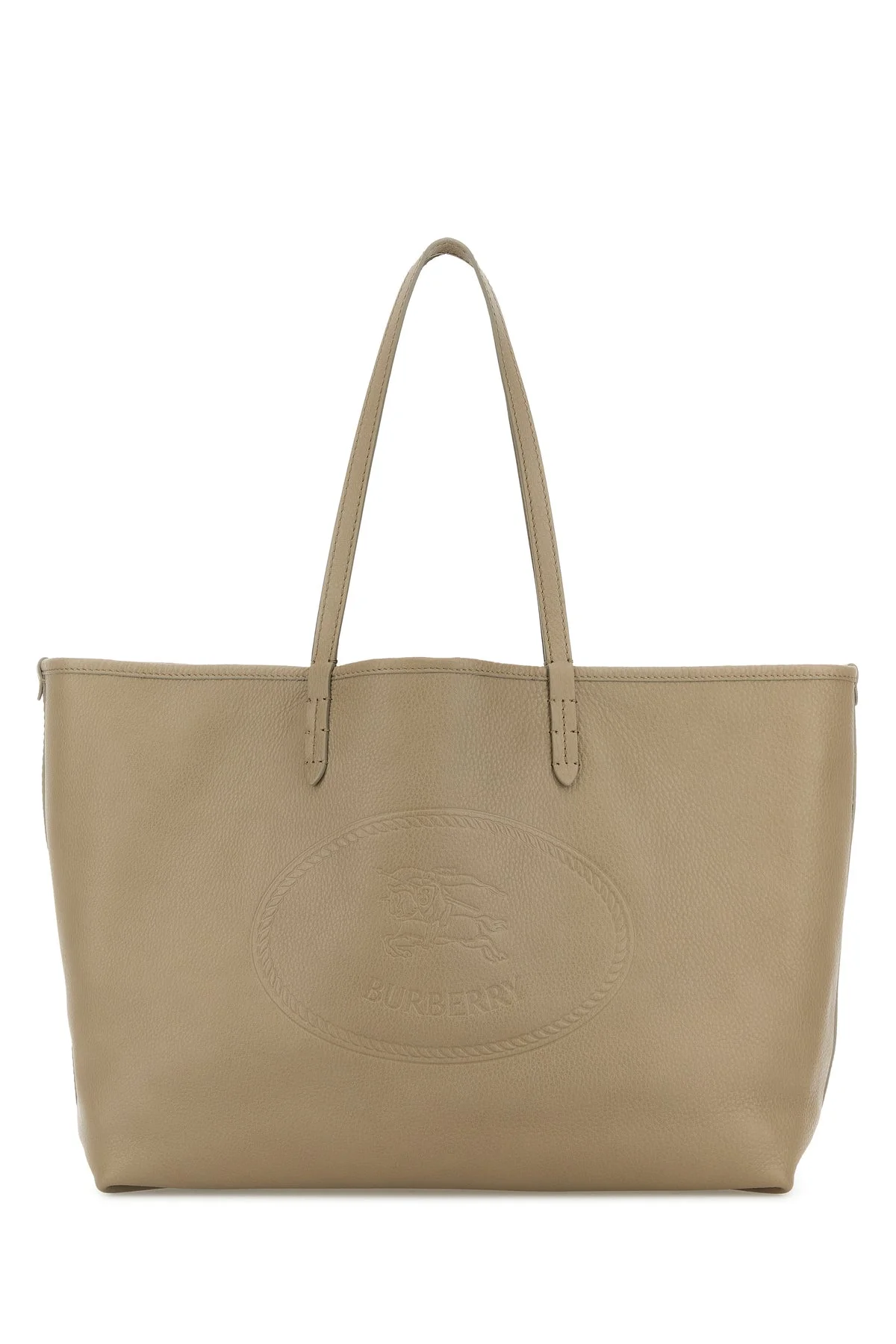 Shopping bag realized in pebble calf leather characterized by embossed Equestrian Knight motif at the front. - Two tonal leather flat handles - Snap button closure - Unlined interior with a pouch DETAILS Cappuccino leather shopping bag Exterior: 100% Calf Made in italy Width: 30 cm Height: 28 cm Depth: 18 cm Handle height: 23 cm