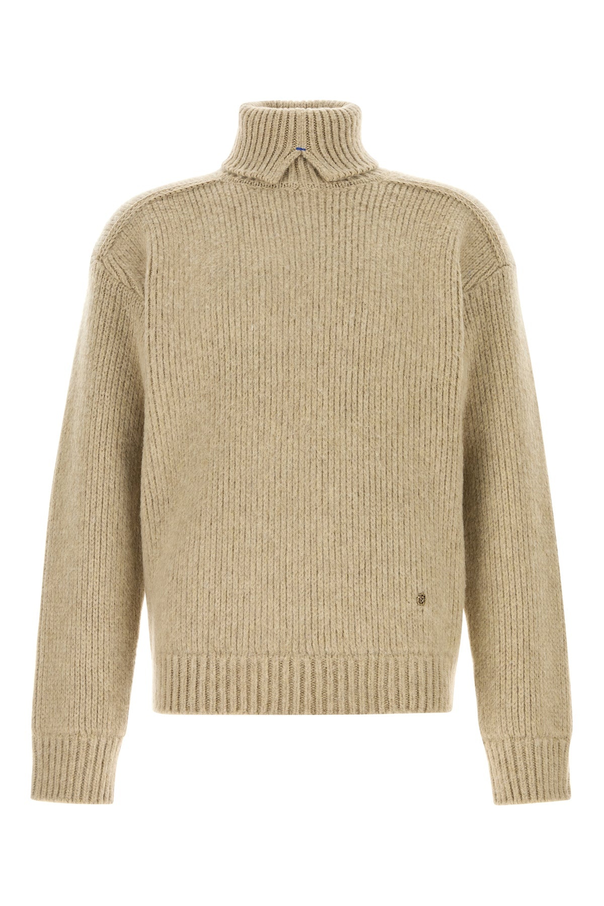 Sweater realized in wool and cashmere enriched by logoed metal detail on the hemline. - Turtleneck - Ribbed cuffs and hemline DETAILS Cappuccino wool blend sweater Exterior: 95% Wool 5% Chasmere Made in italy Model is 185 cm and is wearing a size M