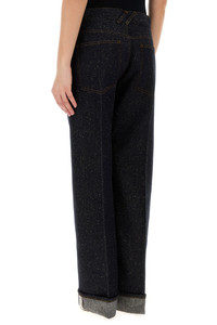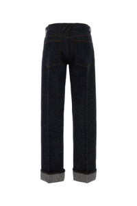 Jeans realized in cotton blend denim enriched by metal logoed detail at the waist. - Belt loops at the waist - Concealed zip and a single visible button closure - Five classic pockets - Foldable hemline with logoed label DETAILS Dark blue denim jeans Exterior: 71% Cotton 24% Nylon 5% Other fibers Made in italy Model is 170 cm and is wearing a size 26