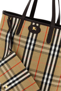 Reversible shopping bag realized in pebble calf leather enriched by metal Equestrian Knight detail at the front. - Two tonal leather flat handles - Contrasting canvas interior with Burberry Check motif, Equestrian Knight detail and a detachable pouch DETAILS Dark brown leather Bloomsbury shopping bag Exterior: 100% Calf Interior: 69% Cotton 21%Viscose 10% Linen Finishing: Golden metal Made in italy Width: 32,5 cm Height: 38 cm Depth: 12 cm Handle height: 28 cm