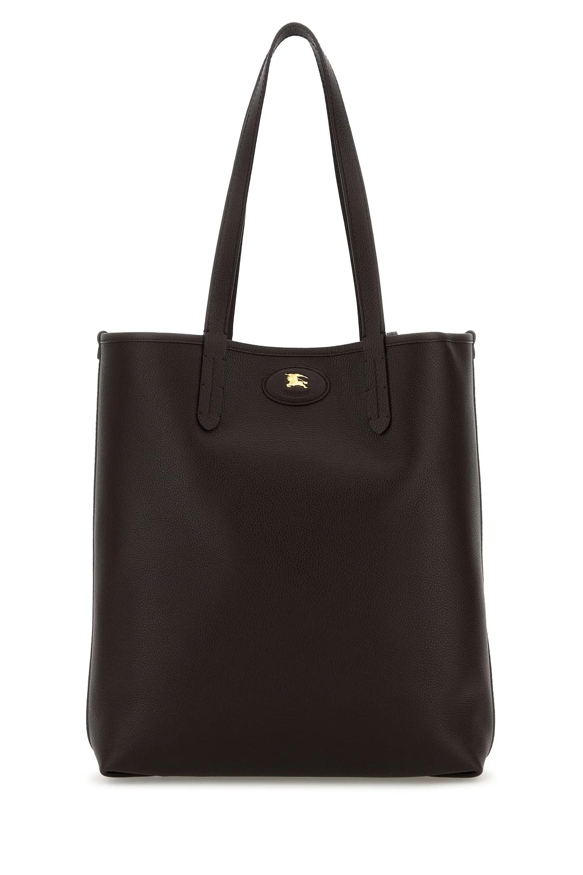Reversible shopping bag realized in pebble calf leather enriched by metal Equestrian Knight detail at the front. - Two tonal leather flat handles - Contrasting canvas interior with Burberry Check motif, Equestrian Knight detail and a detachable pouch DETAILS Dark brown leather Bloomsbury shopping bag Exterior: 100% Calf Interior: 69% Cotton 21%Viscose 10% Linen Finishing: Golden metal Made in italy Width: 32,5 cm Height: 38 cm Depth: 12 cm Handle height: 28 cm