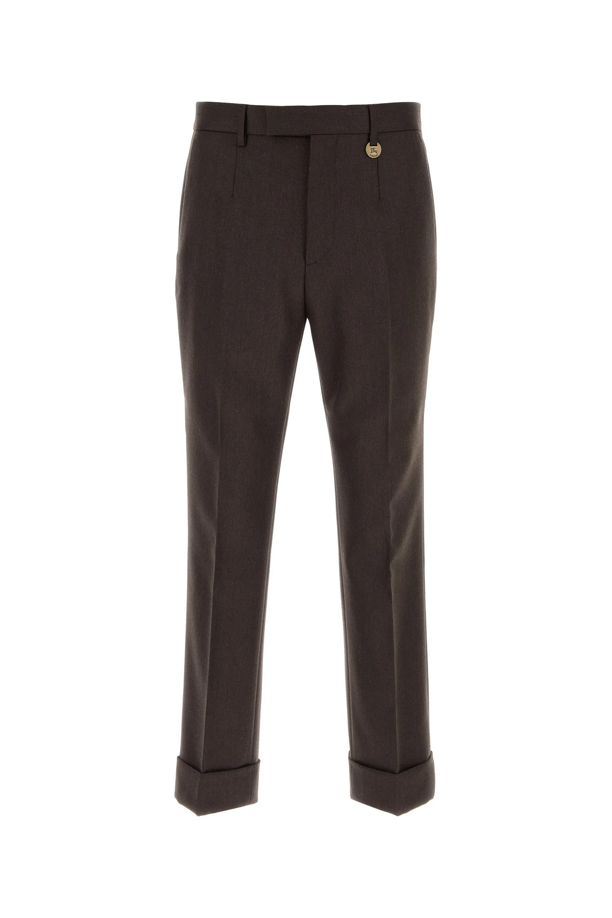 Pant realized in pure wool characterized by central ironed pleats. - Belt loops at the waist - Concealed zip and hook closure - Slant pockets and two slit pockets at the back - Folded hemline DETAILS Dark brown wool pant Exterior: 100% Wool Made in italy Sample size: 48