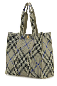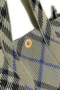 Shopping bag realized in canvas characterized by Check motif embroidery on the entire surface. - Two fabric flat handles - Snap closure - Unlined interior with a zip pocket DETAILS Embroidered canvas medium Check shopping bag Exterior: 100% Nylon Finishing: Golden metal Made in italy Width: 40 cm Height: 36 cm Depth: 17,5 cm Handle height: 25 cm